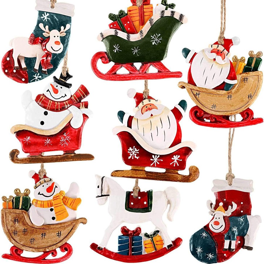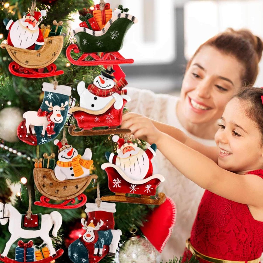 Рождественские елочные украшения выполнены из натурального дерева с использованием экологических красок.