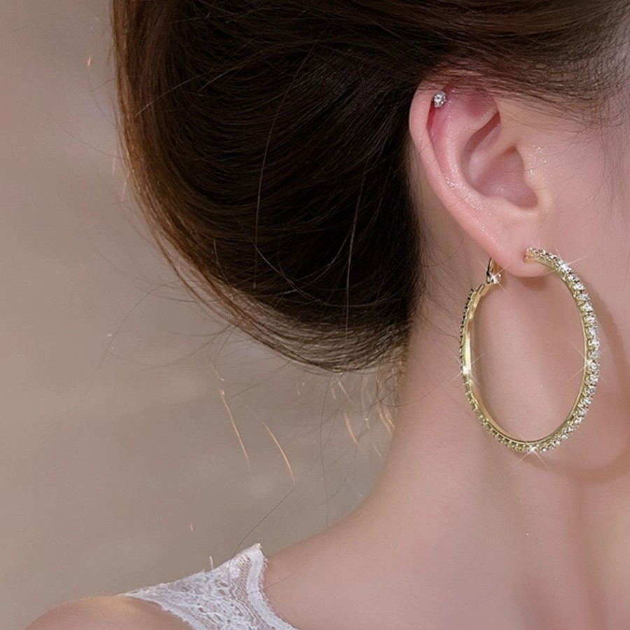 Эти серьги кольца из золотистого металла добавят блеска к вашему образу.