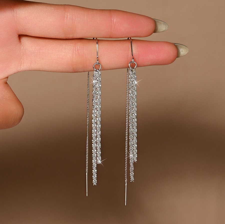 Серьги-протяжки будут привлекать внимание игривым блеском.
