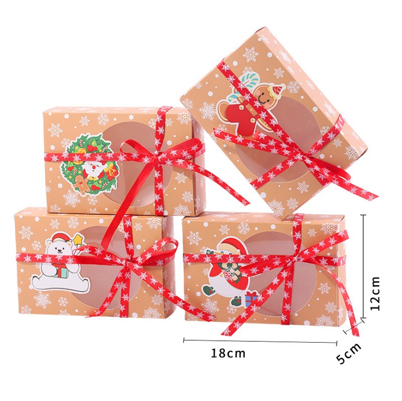 В комплекте: 4 коробки подарочные новогодние складные + 4 ленты.