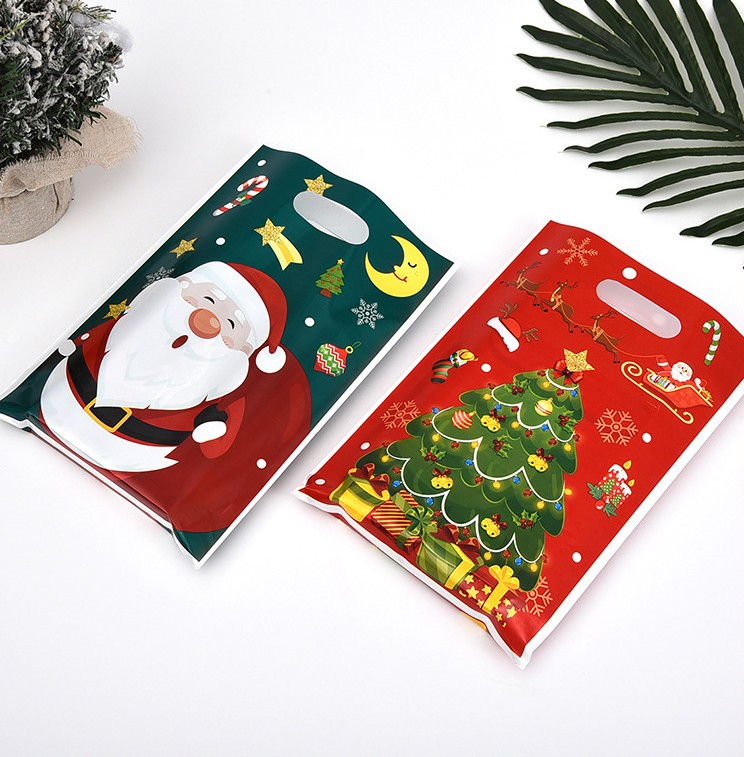 Подарочный полиэтиленовый пакет с ярким красочным новогодним оформлением.