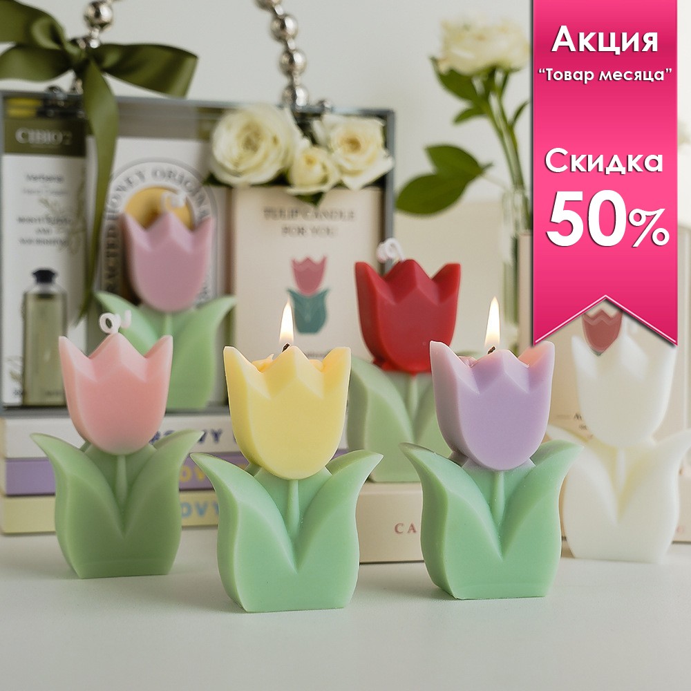 Необыкновенное сочетание цвета и формы. Свеча в виде цветка тюльпана идеально дополнит ваш интерьер.
