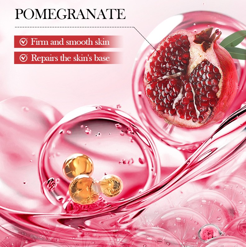 - Экстракт граната обладает мощными омолаживающими свойствами, тонизирует, разглаживает морщины, стимулирует выработку коллагена и эластина. Насыщая кожу витаминами и микроэлементами, придает лицу сияние и здоровый цвет, создавая эффект безупречной молодости.