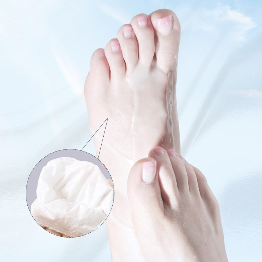 Способ применения: Извлечь маску из упаковки и надеть как носочки на предварительно очищенную поверхность ступней. Оставить на 20-40 минут, затем удалить. Вмассировать остатки ухаживающей эссенции в кожу.