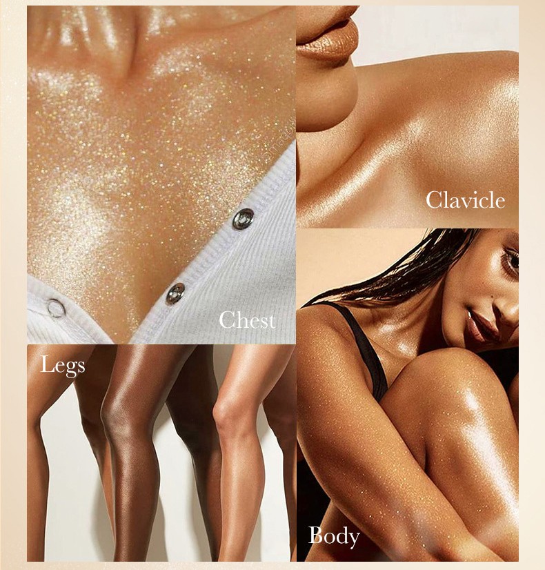 Идеально подходит для создания утонченного сияния на открытых участках тела.